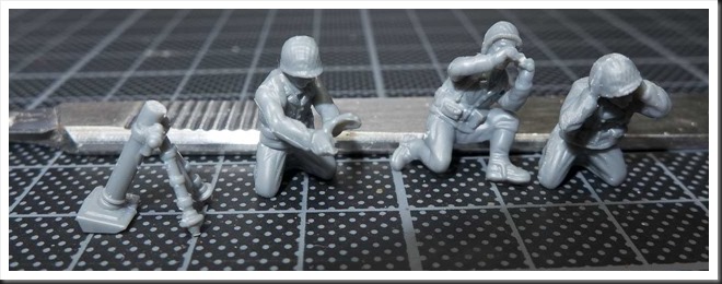 Finally, we arrive to my ‘huh’ moment. Opinions may of course differ, but to me the addition of this heavy piece of equipment in a 1/72 scale set is a bit of a mystery. 20mm minis are most often used in skirmish games. On the other hand, 4.2 inch mortars were deployed as battalion level assets and had minimum range of over 500 meters – not likely the equipment you’d encouncer at the edge of front line. Addition of some troops with sachel charges, bangalore tubes or flamethrowes would in my opinion be much more useful. But here it is, in three ‘copies’.